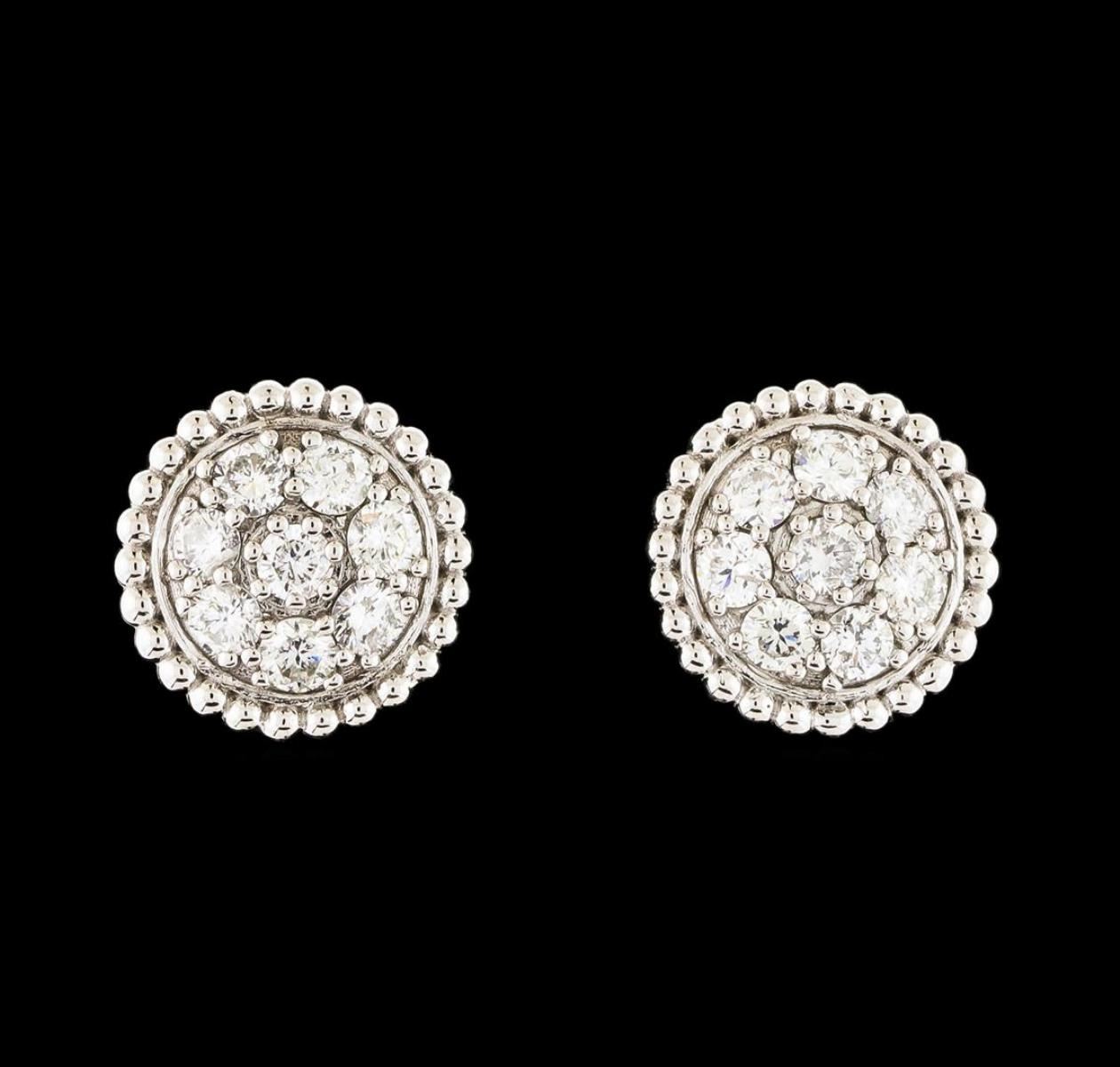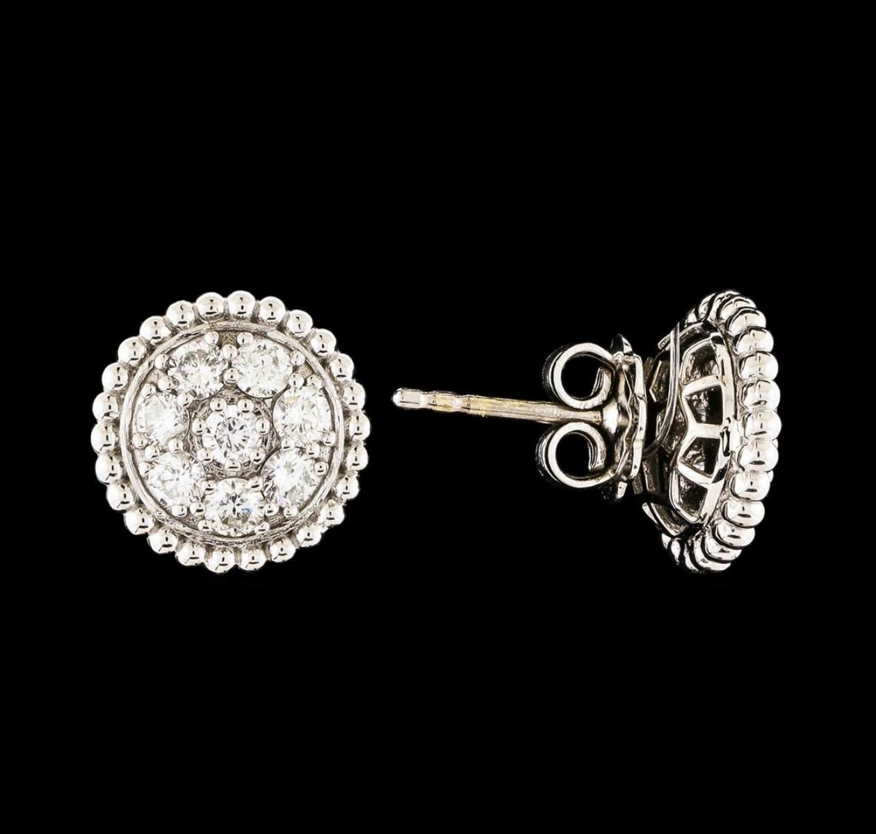 One pair of Diamond Earrings featuring: 14KT White Gold with a total weight of 4.45 grams and 16 Diamonds with a total weight of 1.02ctw.