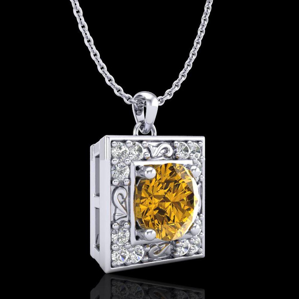 REF-143F6M - SKU: 38169 ---- 1.02 ctw Intense Fancy Yellow Diamond Art Deco Necklace 18k White Gold