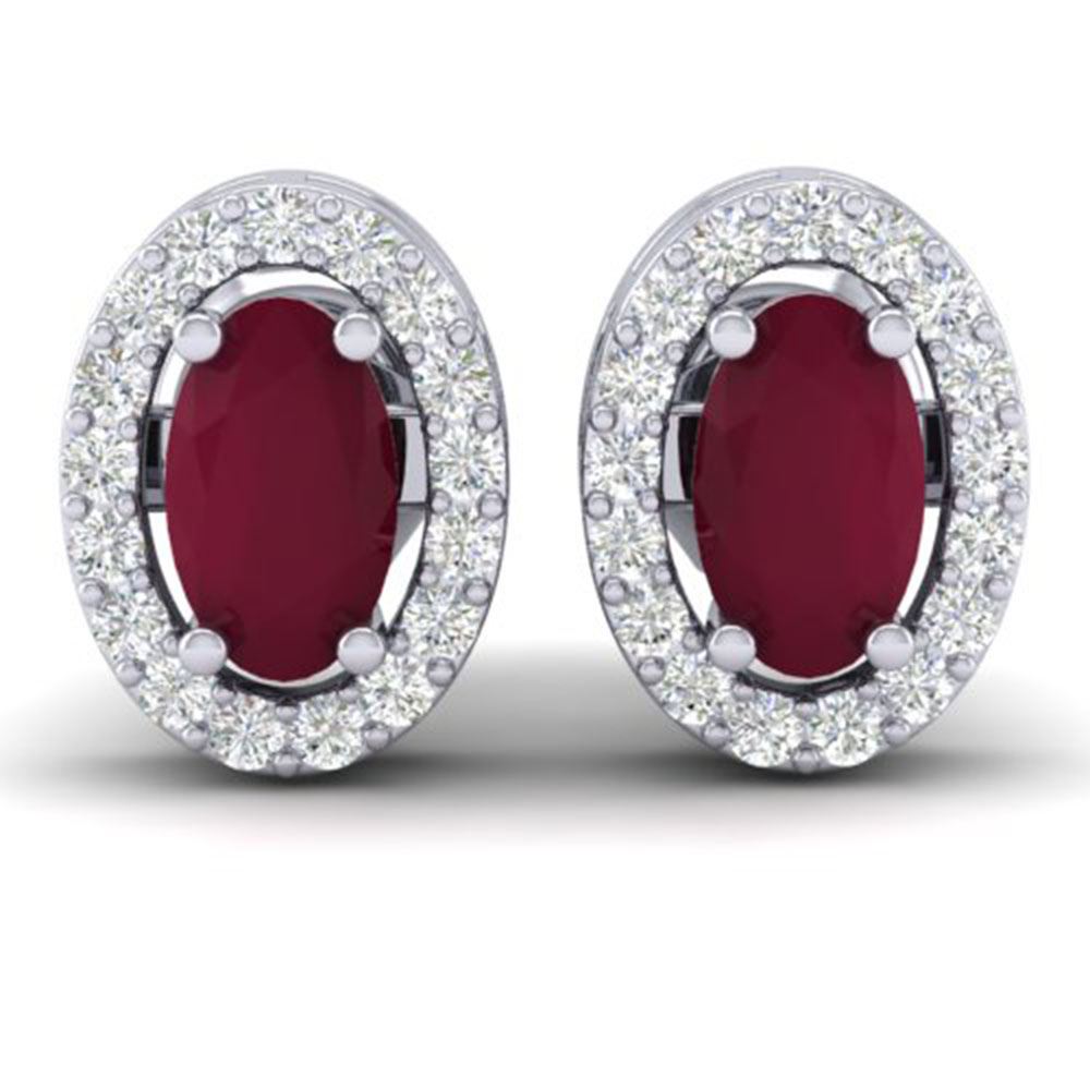 REF-24M5G - SKU: 21191 ---- 1.02 ctw Ruby & Micro Pave VS/SI Diamond Earrings 18k White Gold