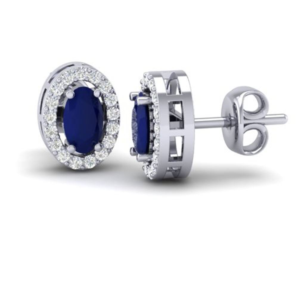 REF-24R5K - SKU: 21193 ---- 1.02 ctw Sapphire & Micro Pave VS/SI Diamond Earrings 18k White Gold