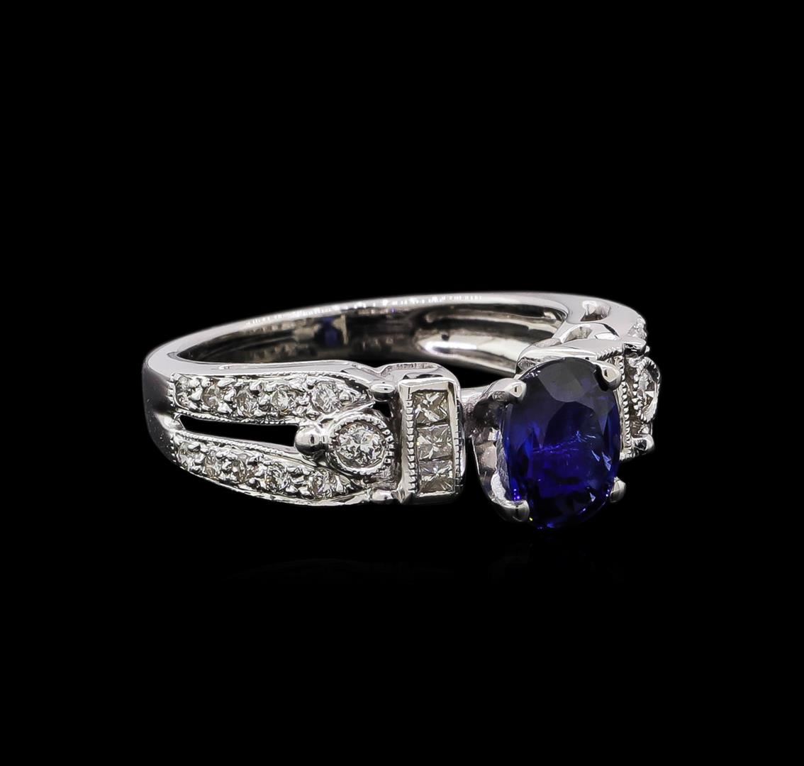 One ring : 14KT white gold weighing 4.45gm containing one sapphire with a total weight of 1.02ct and diamonds weighing 0.3ctw.