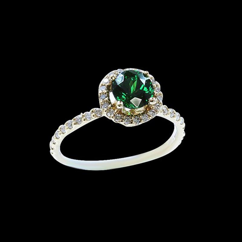 14K Y/G NATURAL TSAVORITE RING :2.00GRAM /TSAVORITE :1.02CT/DIAMOND RD :0.27CT/#GVR1288