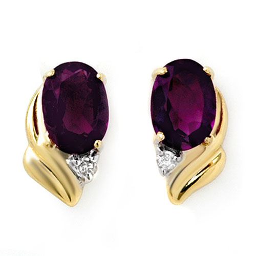 REF-11K3W -12858 ---- 1.03 CTW Amethyst & Diamond Earrings 10K Yellow Gold ---- Luxury Designer Brand Earrings Appraised at $750 Certificate Number US12858 10k Yellow gold, Earrings Size is 5/16 Inches, Earrings measuring approx. 3/16" x 5/16", weighing in total approx. 1.5 grams. Made in the USA and is stamped 10k, Main stone 1 carat total weight containing 2 pieces of Intense Translucent Purple color with AAA quality Oval shape cut Amethyst , Stone #2 0.03 carat total weight containing 2 pieces of H-I color with VS/SI quality Round shape cut Diamond
