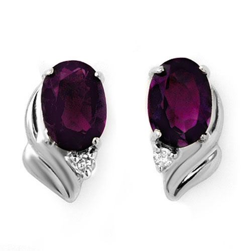 REF-19X5T -12859 ---- 1.03 CTW Amethyst & Diamond Earrings 18K White Gold ---- Luxury Designer Brand Earrings Appraised at $1,300 Certificate Number US12859 18k White gold, Earrings Size is 5/16 Inches, Earrings measuring approx. 3/16" x 5/16", weighing in total approx. 2 grams. Made in the USA and is stamped 18k, Main stone 1 carat total weight containing 2 pieces of Intense Translucent Purple color with AAA quality Oval shape cut Amethyst , Stone #2 0.03 carat total weight containing 2 pieces of H-I color with VS/SI quality Round shape cut Diamond