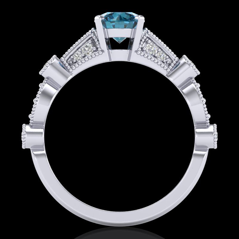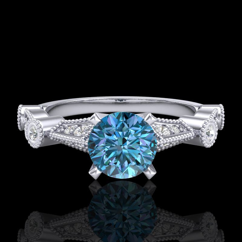 REF-114N5Y -37677 ---- 1.03 CTW Fancy Intense Blue Diamond Solitaire Art Deco Ring 18K White Gold ---- Luxury Designer Brand Ring Appraised at $7,550 Certificate Number US37677 18k White gold, Ring Size is 7, Ring measuring approx. Uniform, weighing in total approx. 6 grams. Made in the USA and is stamped 18k, Main stone 0.75 carat total weight containing 1 pieces of Intense Fancy Blue color with SI quality Round shape cut Diamond , Stone #2 0.28 carat total weight containing 16 pieces of H-I color with VS/SI quality Round shape cut Diamond