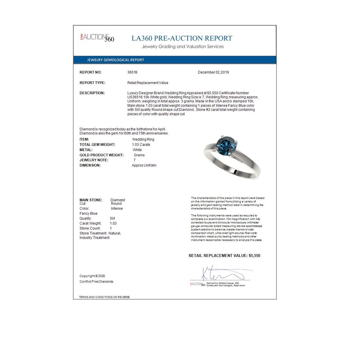 REF-97Y2X - SKU: 36516 ---- 1.03 ctw Certified Intense Blue Diamond Engagment Ring 10k White Gold