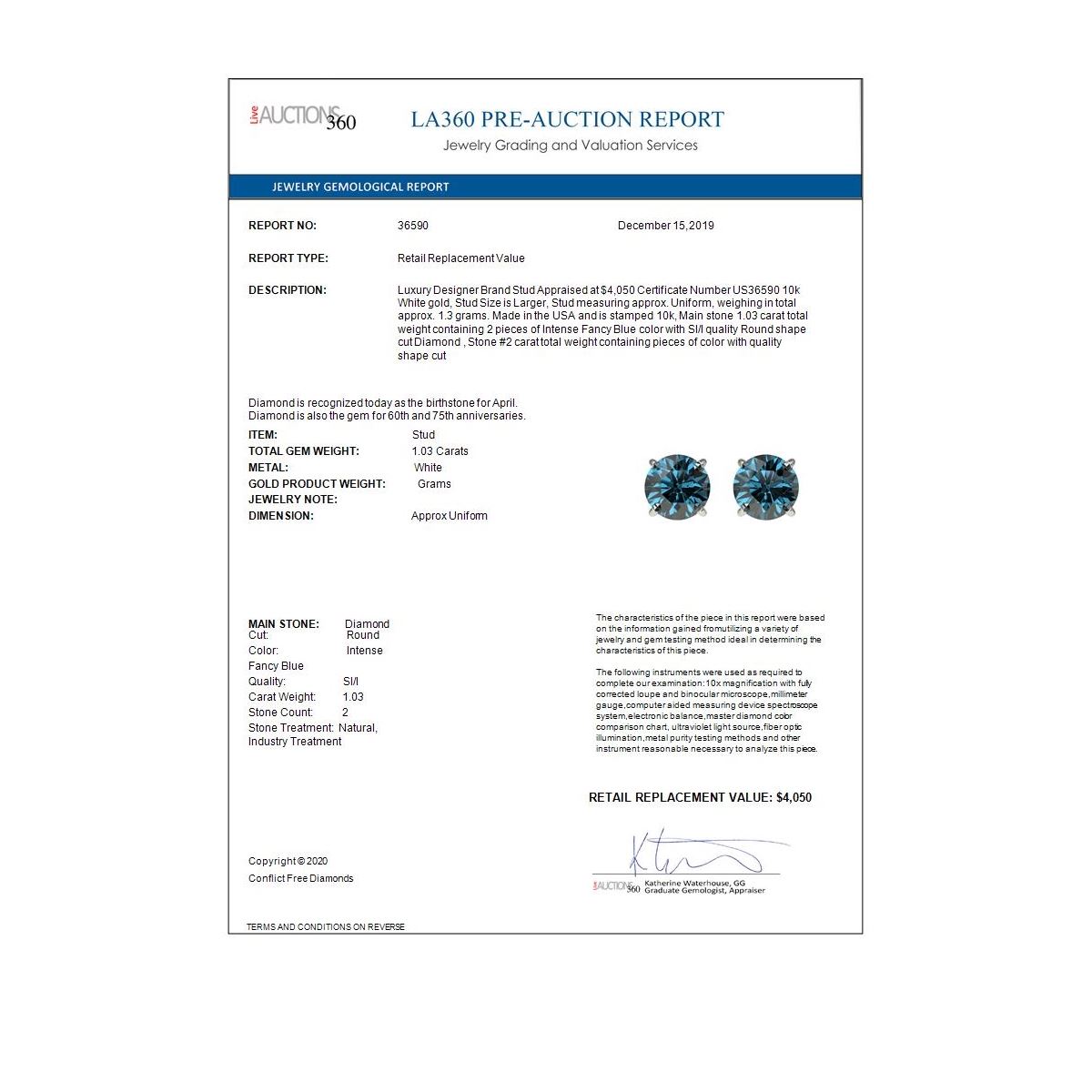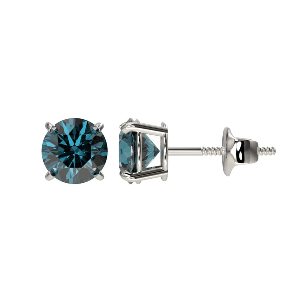 REF-71X2A - SKU: 36590 ---- 1.03 ctw Certified Intense Blue Diamond Stud Earrings 10k White Gold