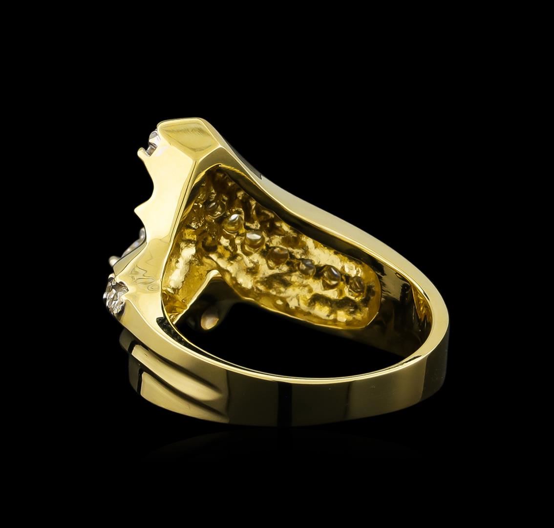One electronically tested 14KT yellow gold lady's cast wedding ring with a bypass shank with a bright polish finish. The featured lady's ring has a shank measuring 2.98 millimeters wide. Identified with markings of "14K". Condition is new, good workmanship. Containing: One prong set round brilliant cut diamond, measuring 4.81 - 4.75 x 3.01mm (depth est.) approximate weight of 0.43ct. Graded in the setting. Clarity: SI-2. Color: Good Fifteen prong set round brilliant cut diamonds, measuring 2.20 - 2.10 x 1.35mm (depth est.) approximate total weight of 15 Stones = 0.60ct. Graded in the setting. Clarity: SI-1 to I-1. Color: H - I. Cut Good. Total Weight of Diamonds 1.03ct. Total Weight of Ring 7.30gm GAS Appraised at $4,905.00.