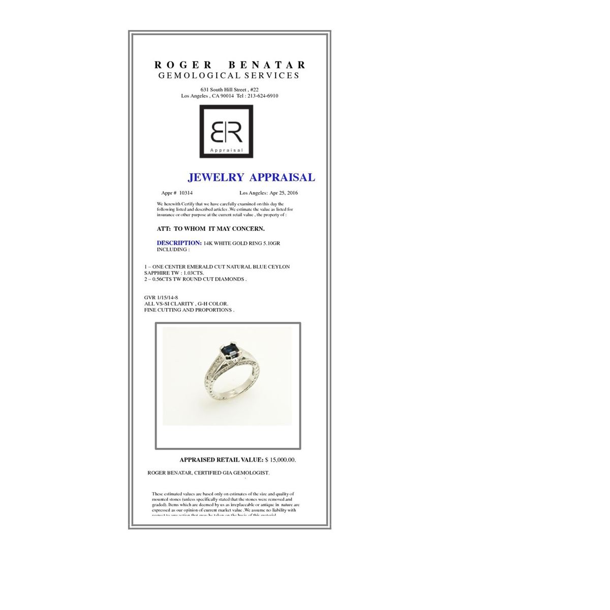 14K W/G NATURAL CEYLON BLUE SAPPHIRE RING :5.10GRAM /BLUE SAPPHIRE :1.03CT/DIAMOND RD :0.56CT/#GVR1382
