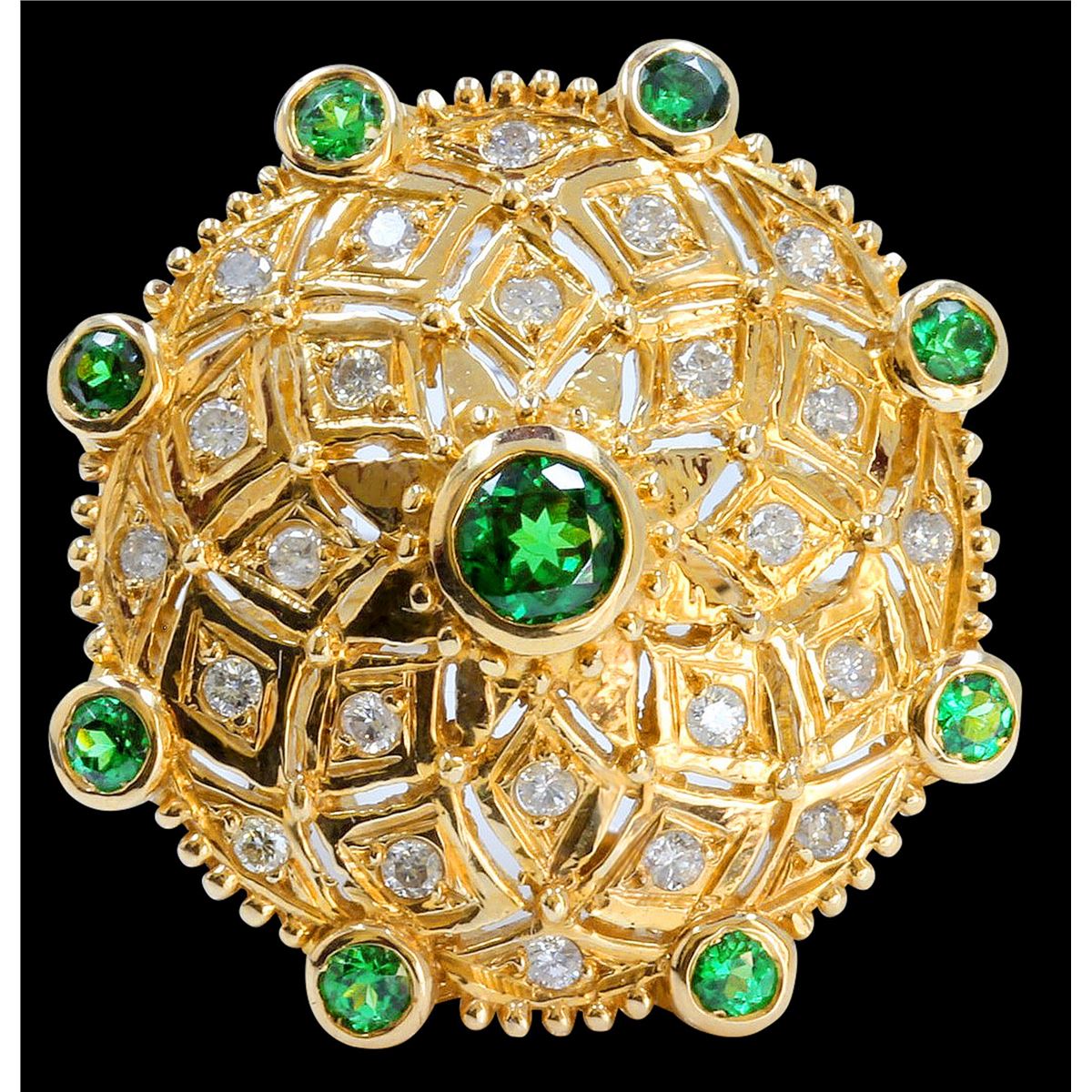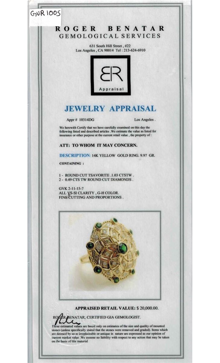 14K YELLOW GOLD NATURAL TSAVORITE RING:9.97 GRAMS/DIAMOND:0.49CT/TSAVORITE:1.03CT/#GVR1005
