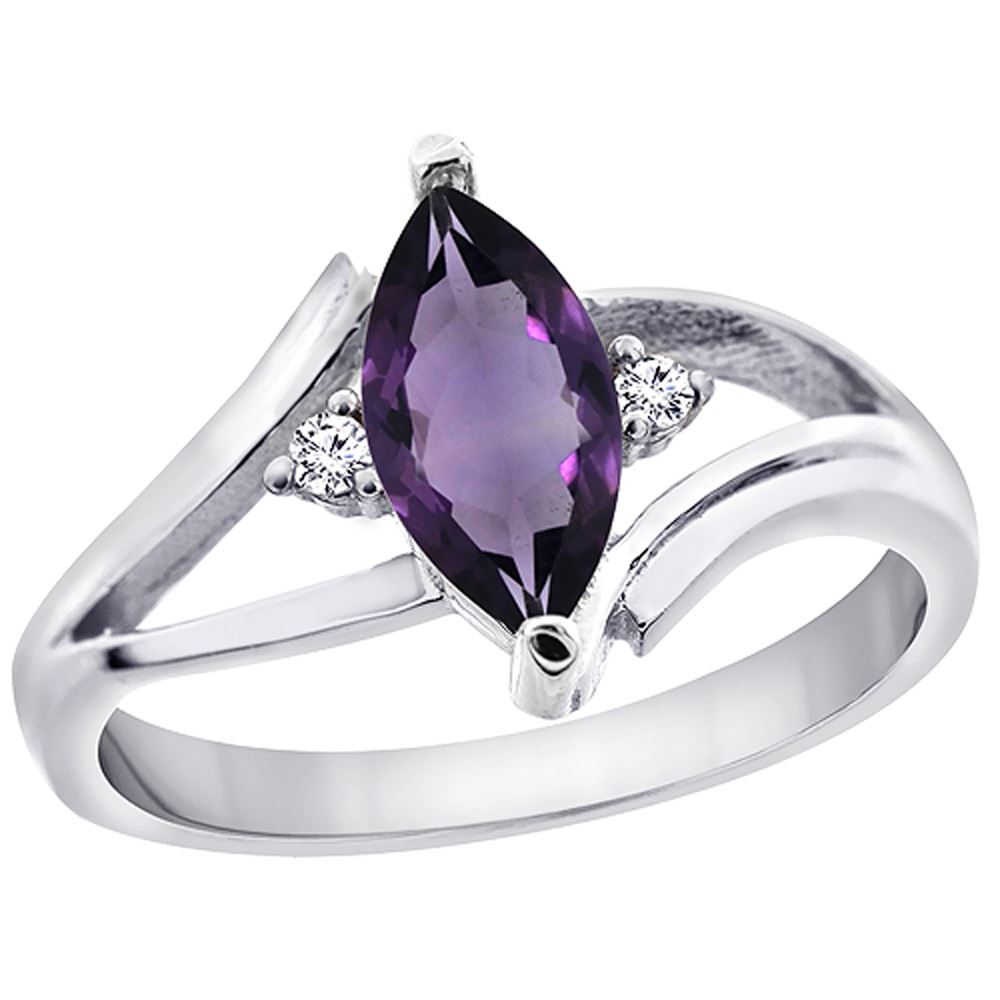 REF-22V9R - SKU: SC-CW901244 ---- 1.04 CTW Amethyst & Diamond Ring 10K White Gold