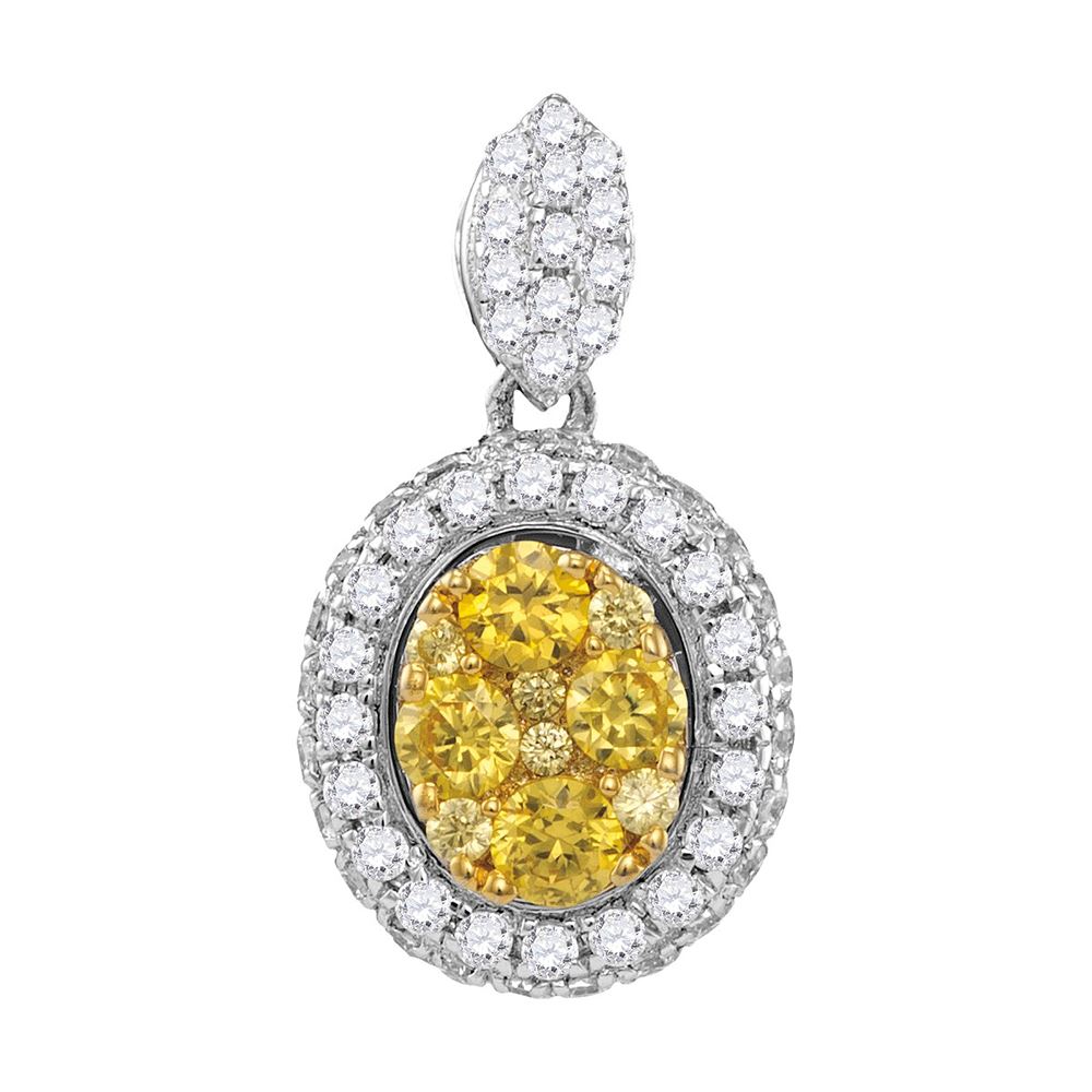 REF-119H9M- SKU: GD109406 ---- 1.04 CTW Canary Yellow Diamond Oval Cluster Pendant 14KT White Gold
