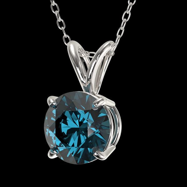 REF-111A2X -36767 ---- 1.04 CTW Certified Intense Blue SI Diamond Solitaire Necklace 10K White Gold ---- Luxury Designer Brand Necklace Appraised at $8,900 Certificate Number US36767 10k White gold, Necklace Size is 16 Incehs, Necklace measuring approx. Uniform, weighing in total approx. 2 grams. Made in the USA and is stamped 10k, Main stone 1.04 carat total weight containing 1 pieces of Intense Fancy Blue color with SI quality Round shape cut Diamond , Stone #2 carat total weight containing pieces of color with quality shape cut