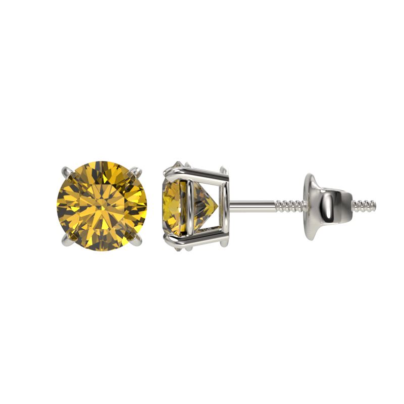 REF-116H3A -36594 ---- 1.04 CTW Certified Intense Yellow SI Diamond Solitaire Stud Earrings 10K White Gold ---- Luxury Designer Brand Earring Appraised at $8,550 Certificate Number US36594 10k White gold, Earring Size is Larger, Earring measuring approx. Uniform, weighing in total approx. 1.3 grams. Made in the USA and is stamped 10k, Main stone 1.04 carat total weight containing 2 pieces of Intense Fancy Yellow color with SI quality Round shape cut Diamond , Stone #2 carat total weight containing pieces of color with quality shape cut