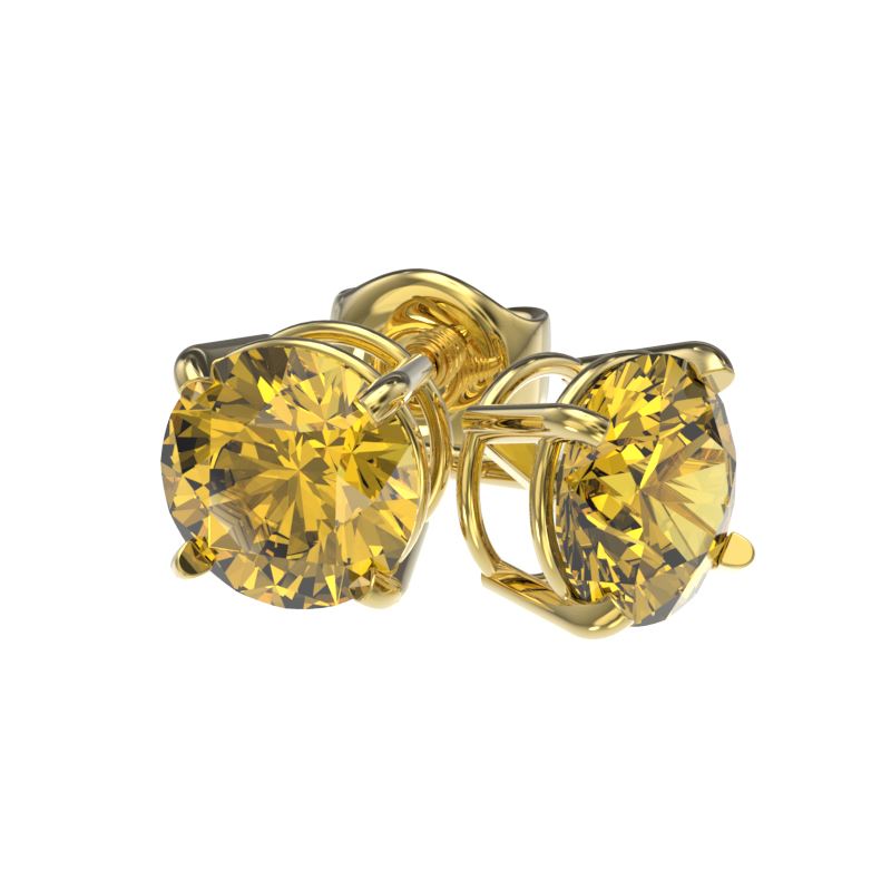 REF-116T3M -36596 ---- 1.04 CTW Certified Intense Yellow SI Diamond Solitaire Stud Earrings 10K Yellow Gold ---- Luxury Designer Brand Earring Appraised at $8,550 Certificate Number US36596 10k Yellow gold, Earring Size is Larger, Earring measuring approx. Uniform, weighing in total approx. 1.3 grams. Made in the USA and is stamped 10k, Main stone 1.04 carat total weight containing 2 pieces of Intense Fancy Yellow color with SI quality Round shape cut Diamond , Stone #2 carat total weight containing pieces of color with quality shape cut