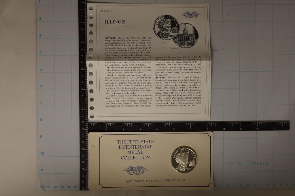 BICENTENNIAL MEDAL COLLECTION, ILLINOIS, IN ORIGINAL FRANKLIN MINT PACKAGING AND INFO SHEET