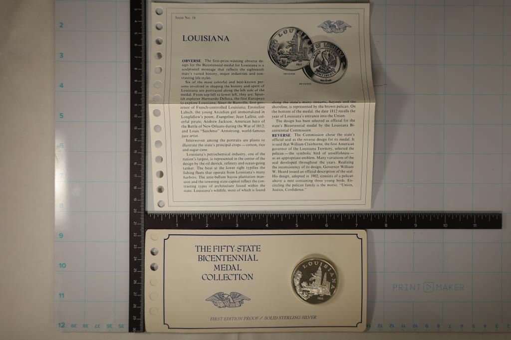 BICENTENNIAL COLLECTION, LOUISIANA, IN ORIGINAL FRANKLIN MINT PACKAGING AND INFO CARD