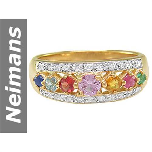 1.04 ct Blue, Green, Orange, Pink, Yellow Sapphire, Emerald, Ruby & Diamond Ring 14kt Gold