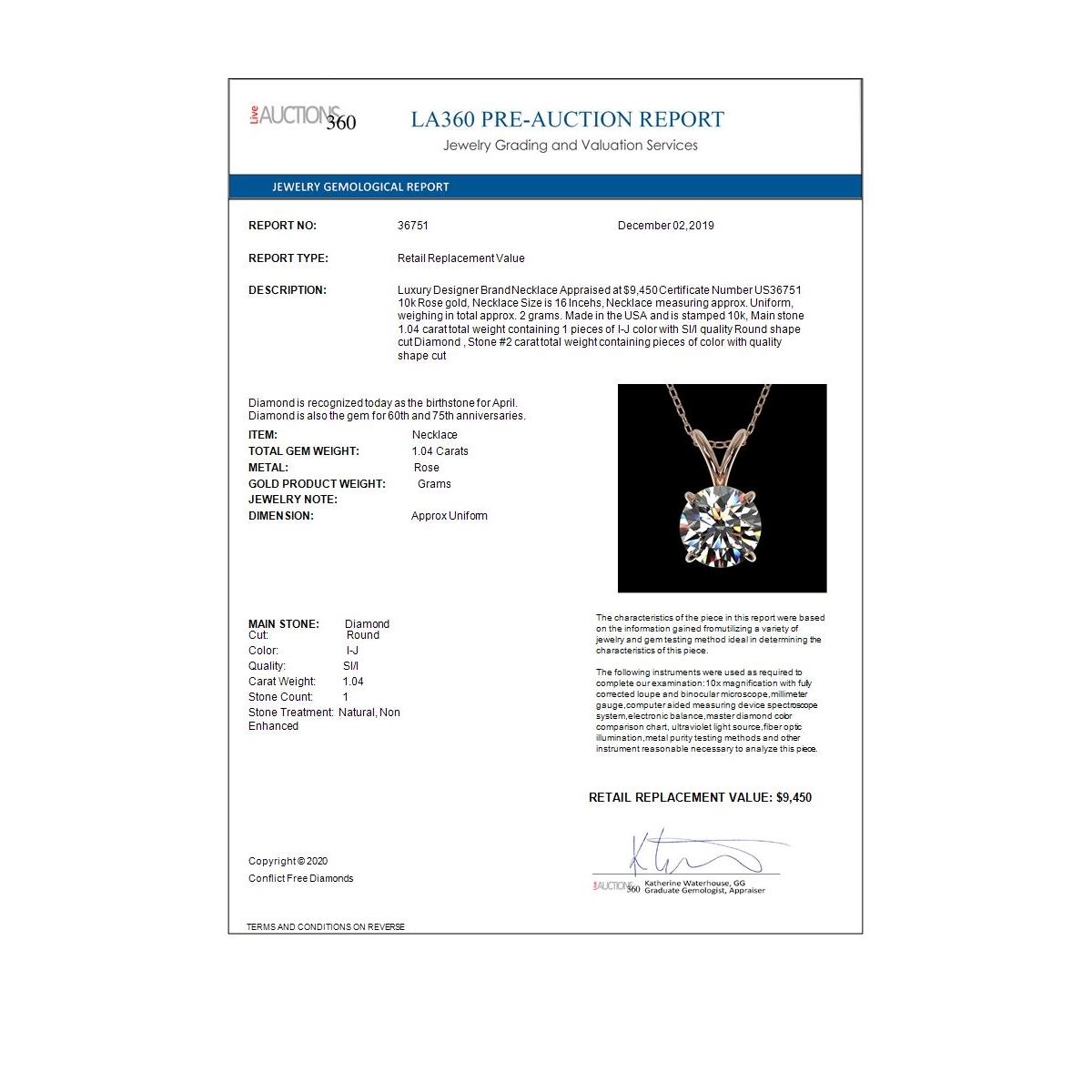 REF-141M3G - SKU: 36751 ---- 1.04 ctw Certified Quality Diamond Necklace 10k Rose Gold