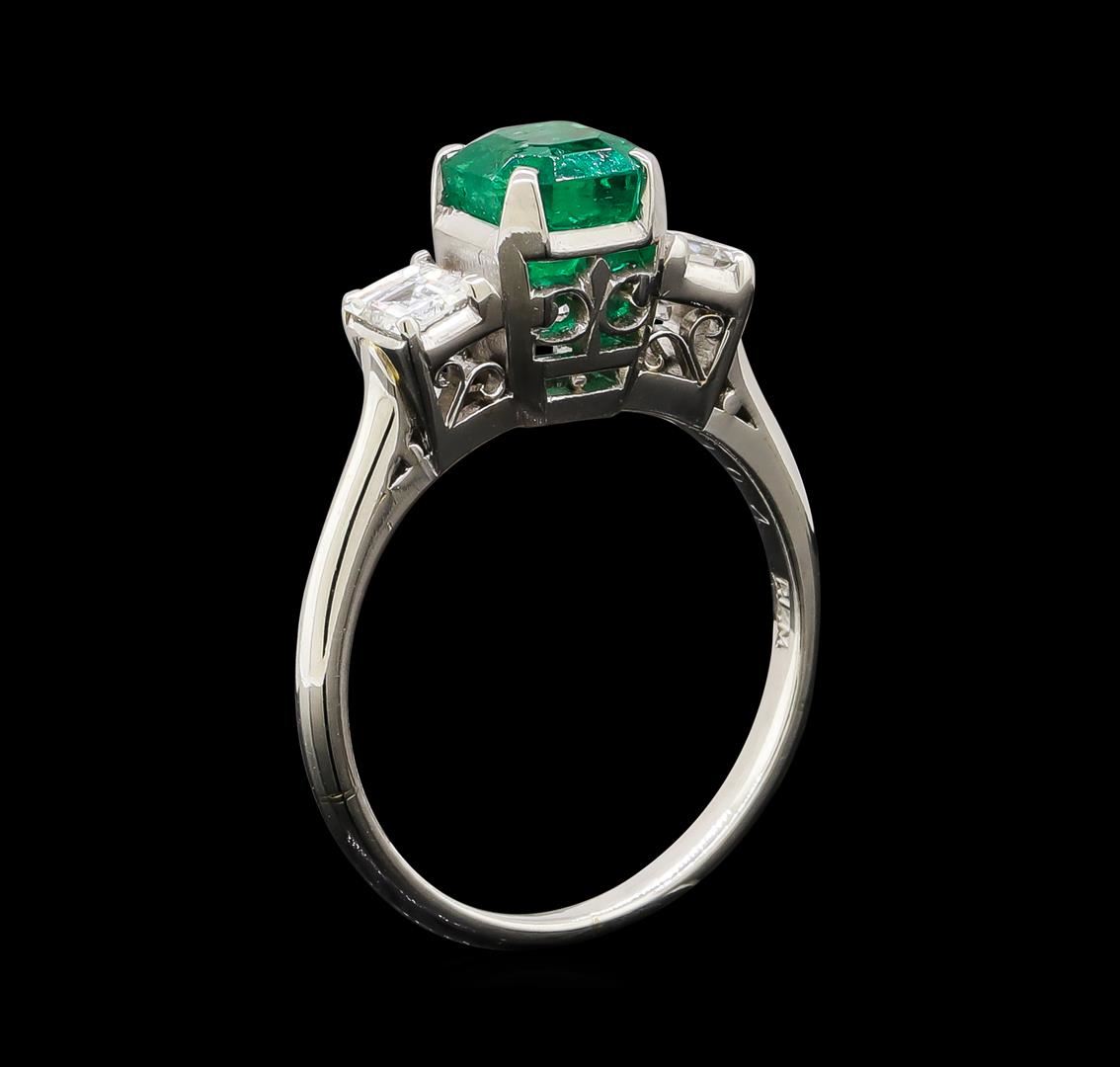 One ring featuring: Platinum containing Emerald with a total weight of 1.04ct and Diamonds with a total weight of 0.39ct. Total Weight of Ring: 4.5 grams.