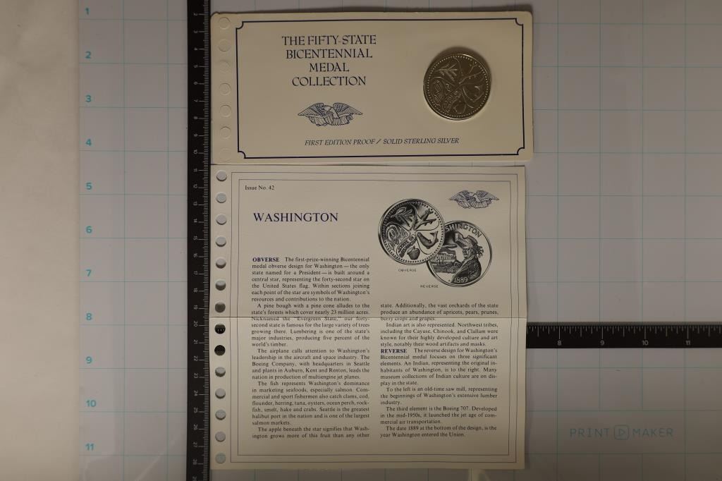 BICENTENNIAL MEDAL (WASHINGTON) IN ORIGINAL FRANKLIN MINT PACKAGING WITH CERTIFICATE