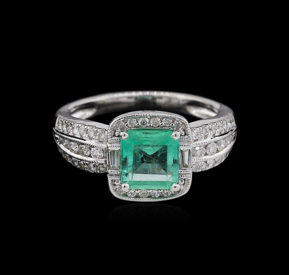 One ring featuring: 18KT white gold weighing 4.85 grams containing one emerald with a total weight of 1.04ct and diamonds with a total weight of 0.48ct.