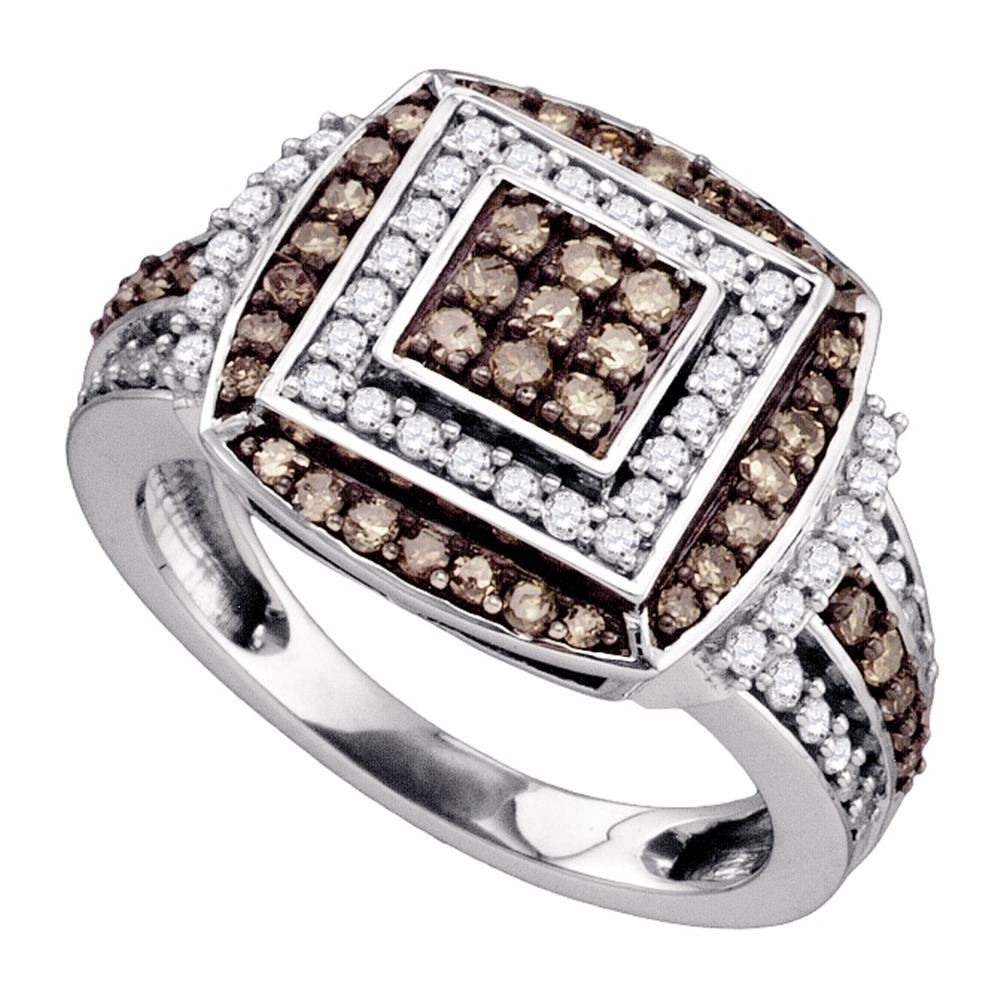 REF-67M4H- SKU: GD72299 ---- 1.05 CTW Brown Color Diamond Square Cluster Ring 10KT White Gold