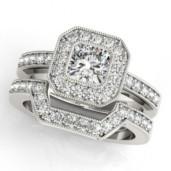 1.05 CTW Certified VS/SI Cushion Diamond 2Pc Set Solitaire Halo 14K White Gold ---- Luxury Designer Brand 2 Pc Set Appraised Retail Price at $7,750 ---- SKU Number US31379 14k White gold 2 Pc Set Size is 7, 2 Pc Set measuring approx. Uniform, weighing in total approx. 9.8 grams. Made in the USA and is stamped 14k, Main stone 0.50 carat total weight containing 1 pieces of H-J color with VS/SI quality Cushion shape cut Diamond , Stone #2 0.3 carat total weight containing 26 pieces of H-I color with VS/SI quality Round shape cut