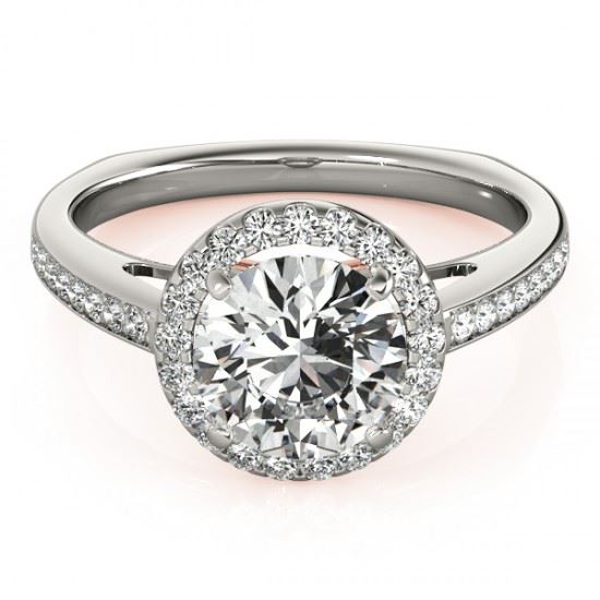 REF-209W8F -26960 ---- 1.05 CTW Certified VS/SI Diamond Solitaire Halo Ring 18K White & Rose Gold ---- Luxury Designer Brand Ring Appraised at $11,550 Certificate Number US26960 18k White & Rose gold, Ring Size is 7, Ring measuring approx. Uniform, weighing in total approx. 6.5 grams. Made in the USA and is stamped 18k, Main stone 0.75 carat total weight containing 1 pieces of H-J color with VS/SI quality Round shape cut Diamond , Stone #2 0.3 carat total weight containing 37 pieces of H-I color with VS/SI quality Round shape cut Diamond