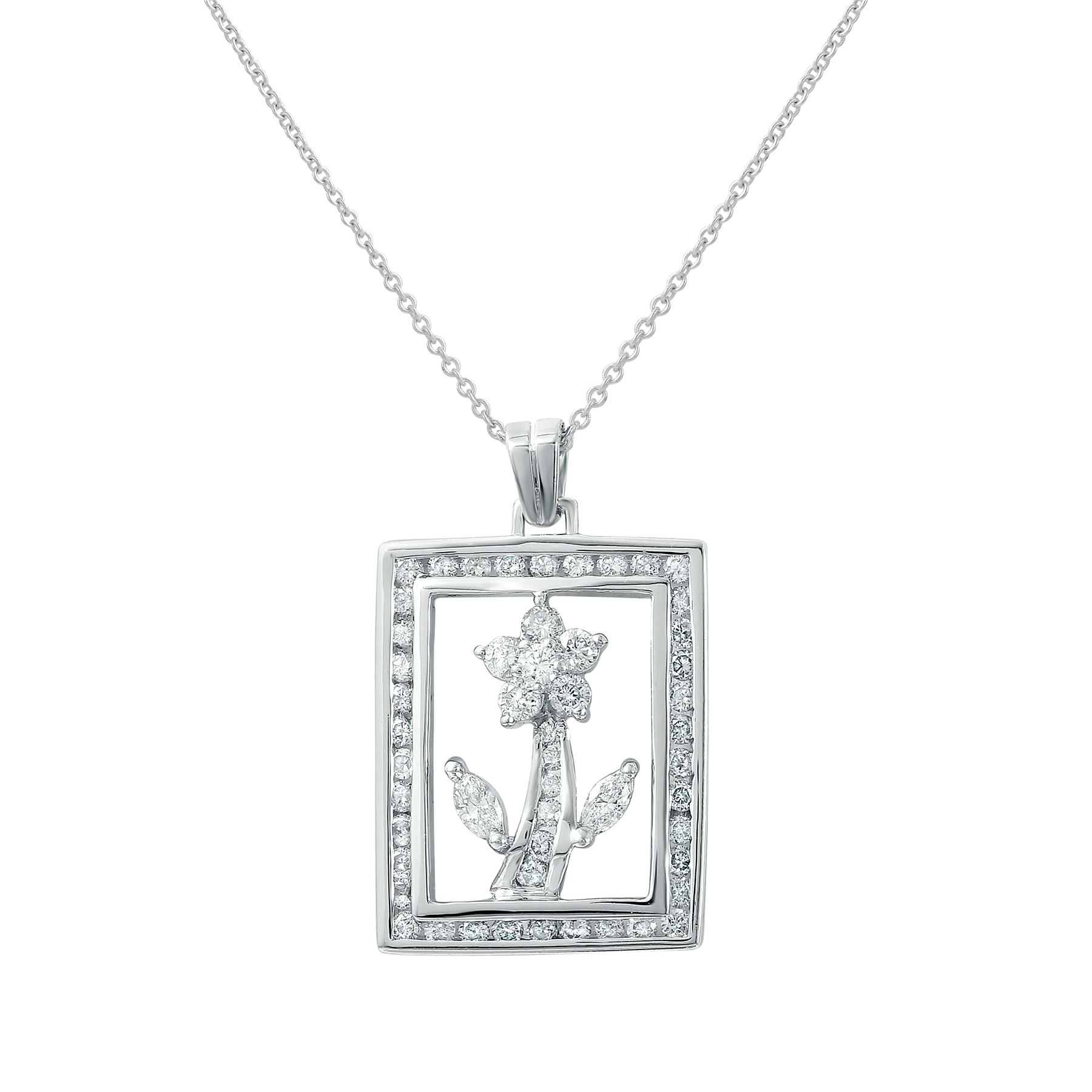 REF-90W8H - JF254733 ---- 1.05 CTW White Round Diamond & Marquise Necklace 18K White Gold