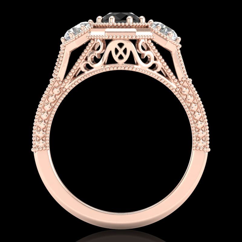 REF-132M8H -37948 ---- 1.05 CTW Fancy Black Diamond Solitaire Art Deco 3 Stone Ring 18K Rose Gold ---- Luxury Designer Brand 3 stone ring Appraised at $8,050 Certificate Number US37948 18k Rose gold, 3 stone ring Size is 7, 3 stone ring measuring approx. Uniform, weighing in total approx. 8.5 grams. Made in the USA and is stamped 18k, Main stone 0.55 carat total weight containing 1 pieces of Black Opaque color with VS quality Round shape cut Diamond , Stone #2 0.5 carat total weight containing 2 pieces of H-I color with VS/SI quality Round shape cut Diamond