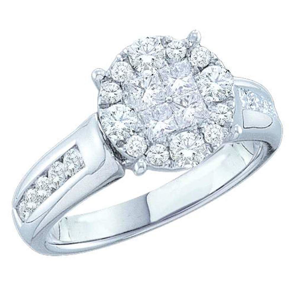 REF-119W9K- SKU: GD46417 ---- 1.05 CTW Princess Diamond Soleil Cluster Bridal Engagement Ring 14KT White Gold