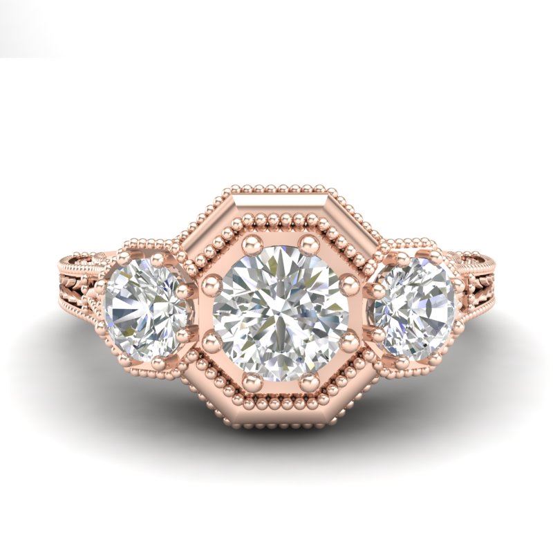 37101 - REF-200M2F ---- 1.05 CTW VS/SI Diamond Solitaire Art Deco 3 Stone Ring 18K Rose Gold ---- Luxury Designer Brand 3 stone ring Appraised at $12,100 Certificate Number US37101 18k Rose gold, 3 stone ring Size is 7, 3 stone ring measuring approx. Uniform, weighing in total approx. 8.5 grams. Made in the USA and is stamped 18k, Main stone 0.55 carat total weight containing 1 pieces of H-J color with VS/SI quality Round shape cut Diamond , Stone #2 0.5 carat total weight containing 2 pieces of H-I color with VS/SI quality Round shape cut Diamond