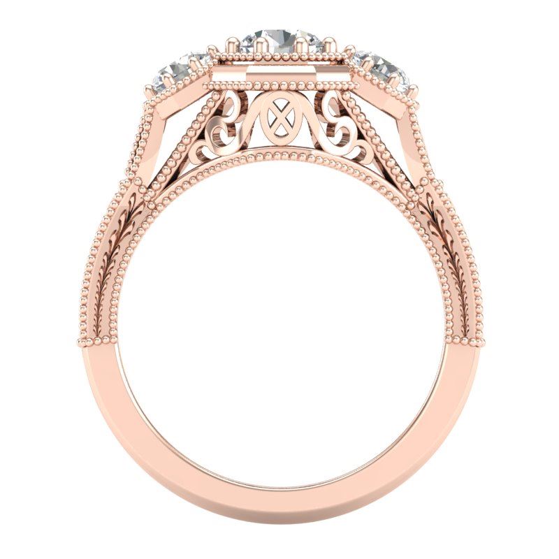 37101 - REF-200M2F ---- 1.05 CTW VS/SI Diamond Solitaire Art Deco 3 Stone Ring 18K Rose Gold ---- Luxury Designer Brand 3 stone ring Appraised at $12,100 Certificate Number US37101 18k Rose gold, 3 stone ring Size is 7, 3 stone ring measuring approx. Uniform, weighing in total approx. 8.5 grams. Made in the USA and is stamped 18k, Main stone 0.55 carat total weight containing 1 pieces of H-J color with VS/SI quality Round shape cut Diamond , Stone #2 0.5 carat total weight containing 2 pieces of H-I color with VS/SI quality Round shape cut Diamond