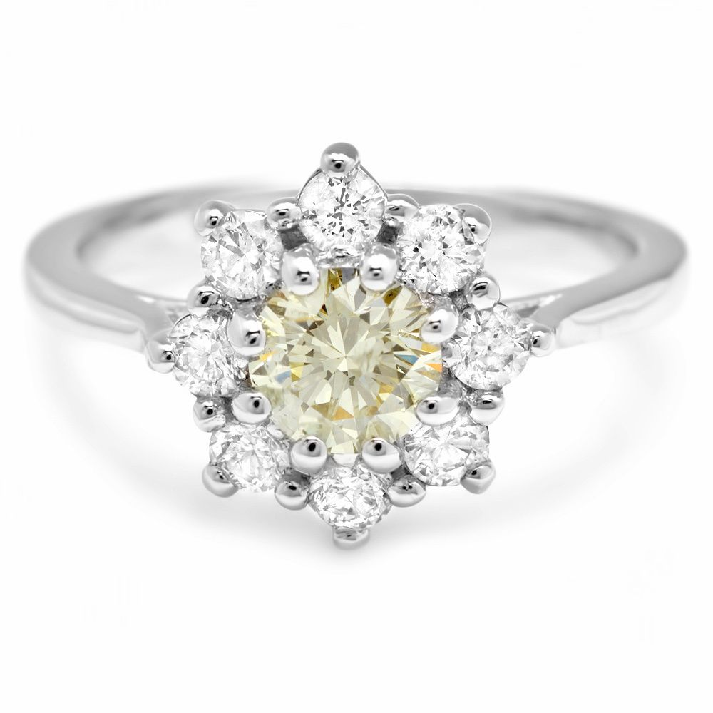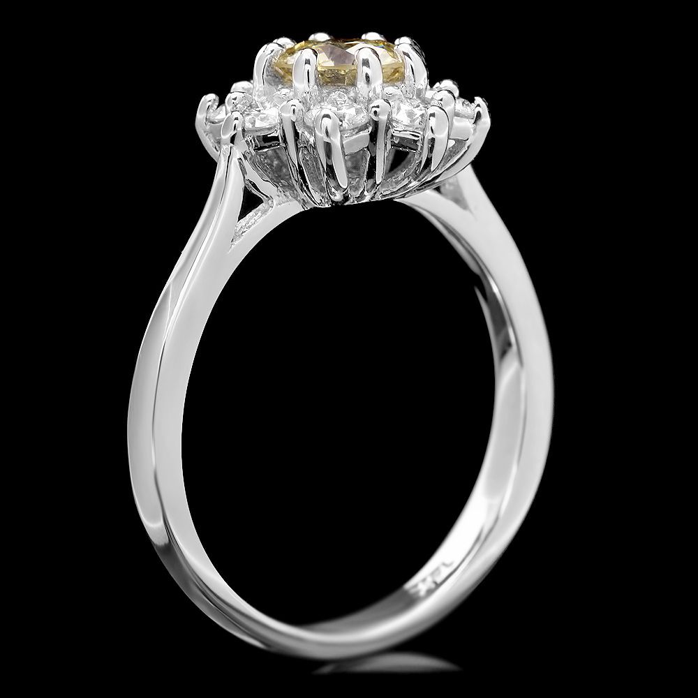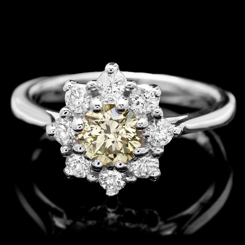 This elegant ladies ring is crafted in solid 14k White Gold and features a 0.60 carat 100% Natural Diamond + accented with 8 sparkling eye-clean natural Diamonds, totaling 0.45 carats.