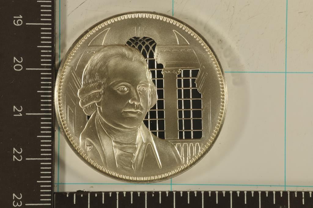 SIGNERS SERIES MEDAL "BENJAMIN HARRISON" VIRGINIA, IN HARD PLASTIC CAPSULE BY THE FRANKLIN MINT. EDGE MARKED