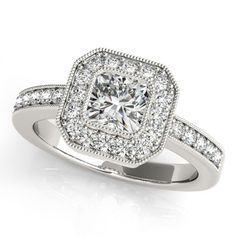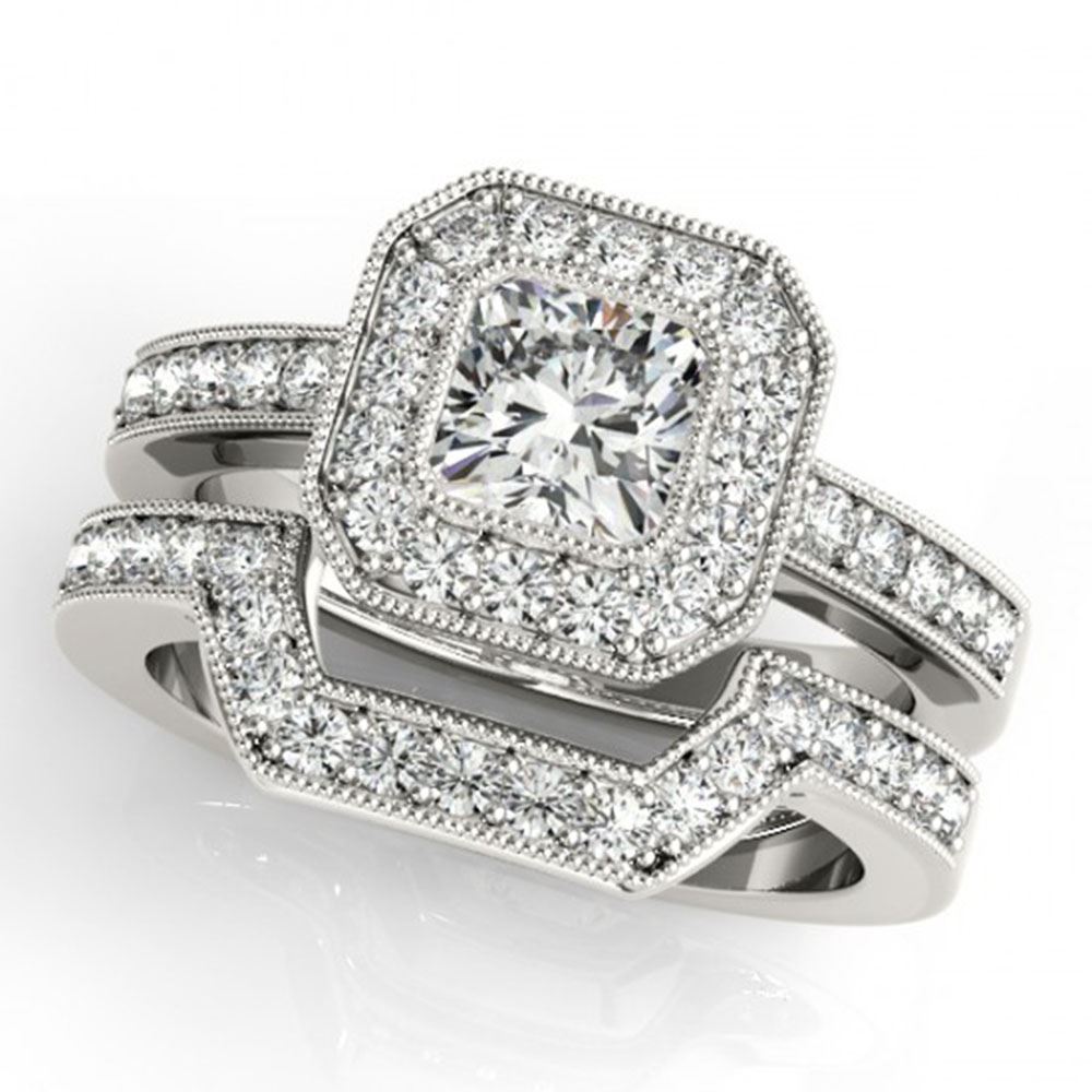 REF-128N2F - SKU: 31379 ---- 1.05 ctw Certified VS/SI Cushion Diamond 2pc Set Halo 14k White Gold