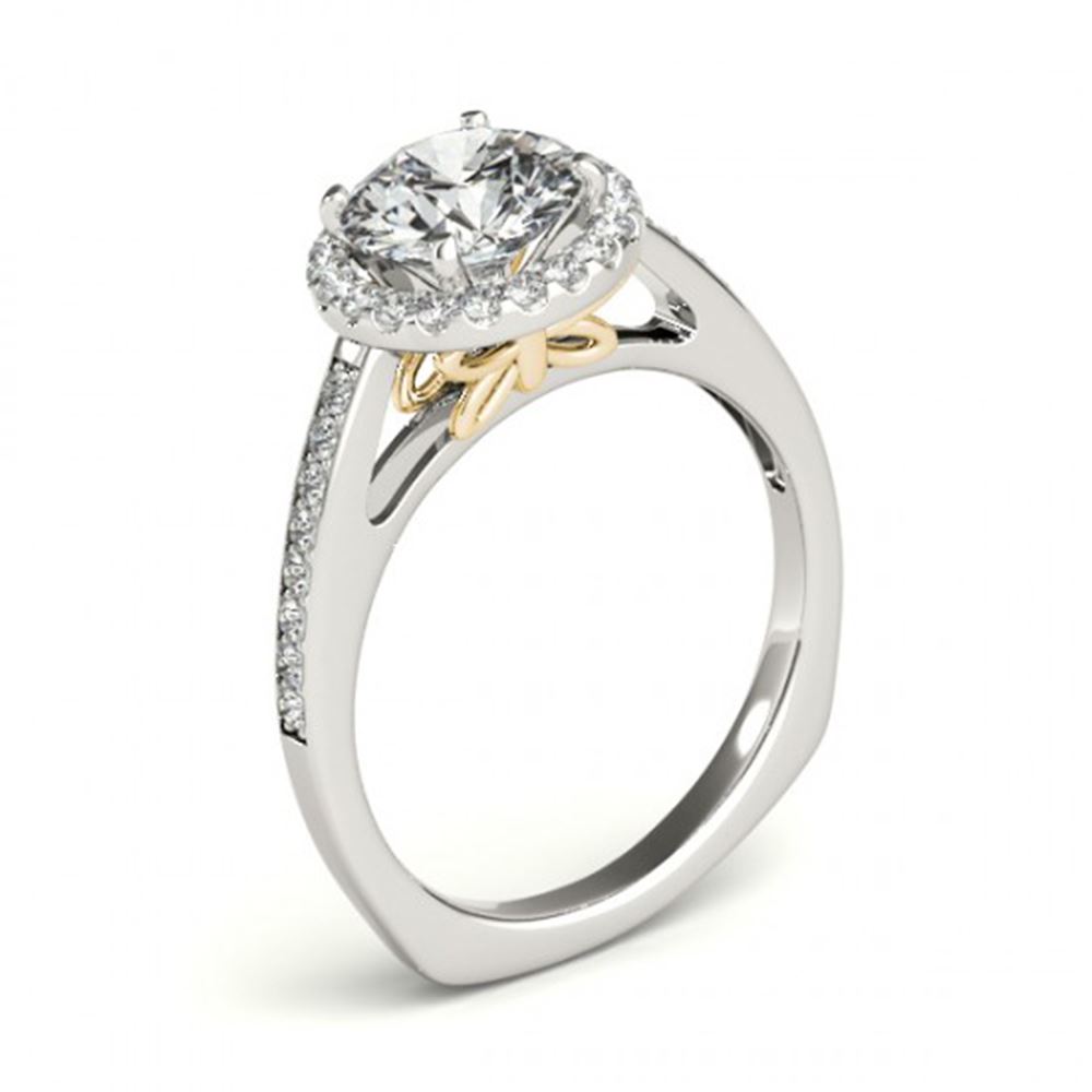 REF-157W4H - SKU: 26961 ---- 1.05 ctw Certified VS/SI Diamond Solitaire Halo Ring 18k White & Yellow Gold