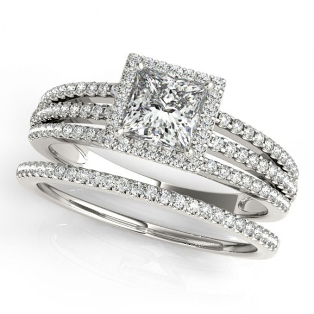 REF-120X8A - SKU: 31382 ---- 1.05 ctw Certified VS/SI Princess Diamond 2pc Set Halo 14k White Gold
