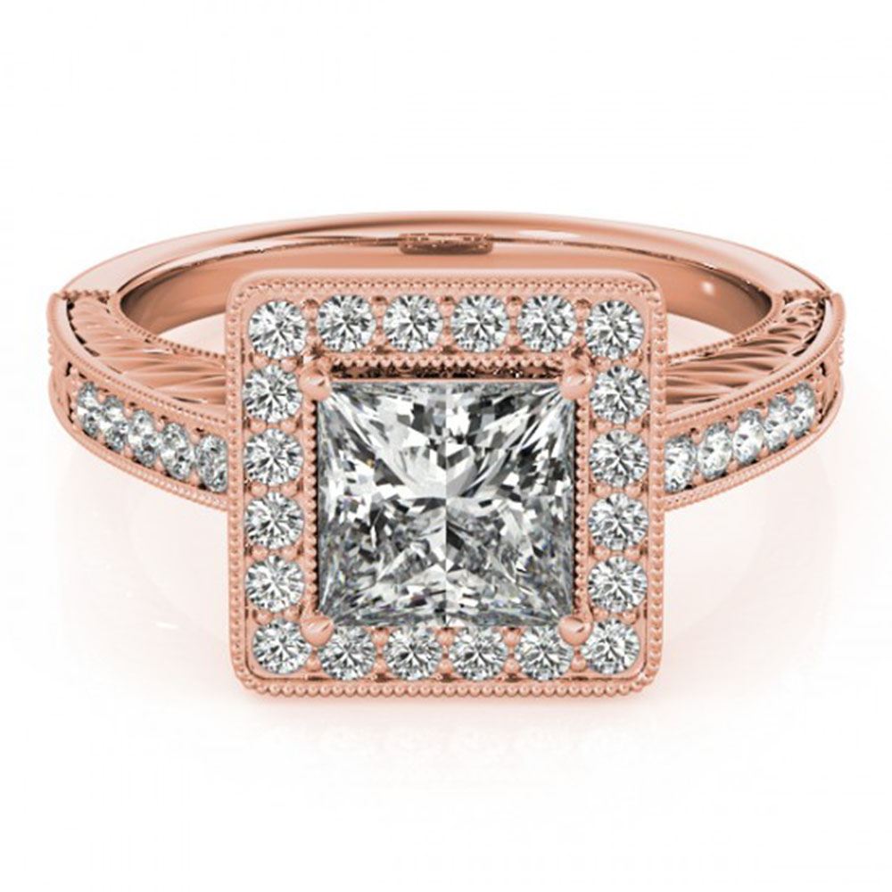 REF-163H6R - SKU: 27118 ---- 1.05 ctw Certified VS/SI Princess Diamond Halo Ring 18k Rose Gold