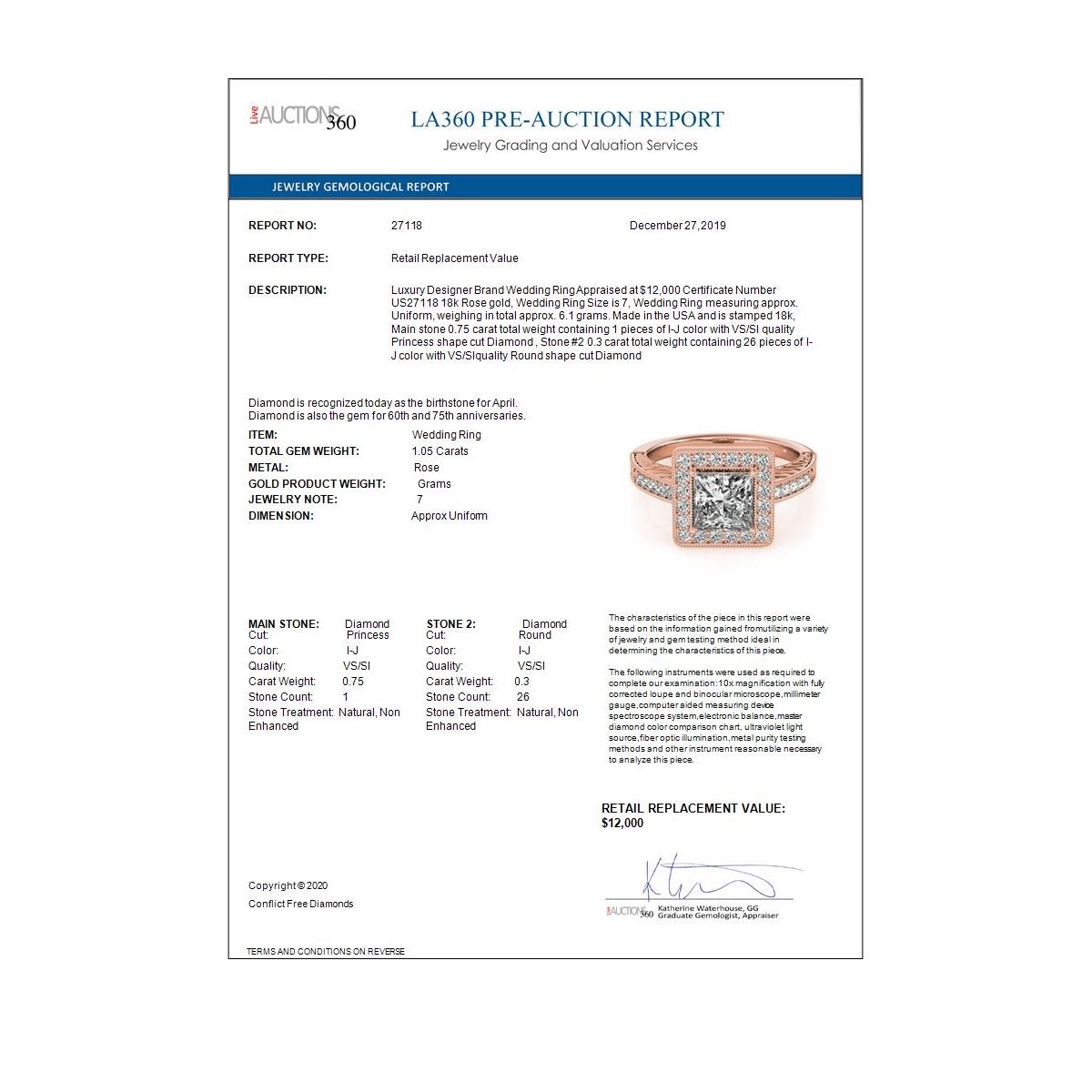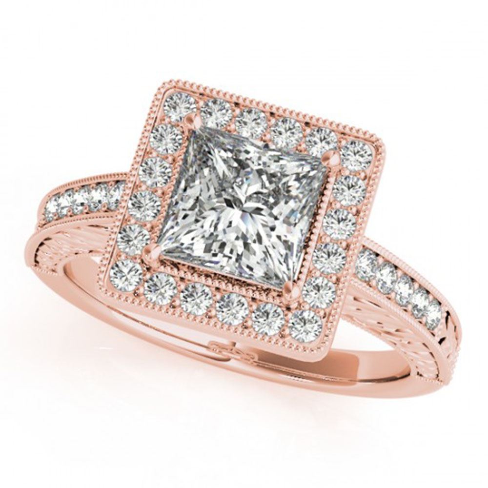 REF-163H6R - SKU: 27118 ---- 1.05 ctw Certified VS/SI Princess Diamond Halo Ring 18k Rose Gold