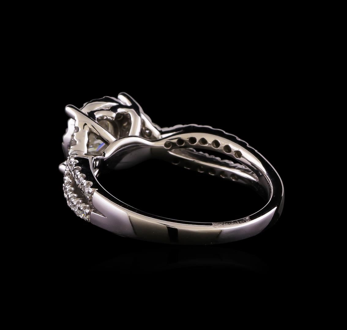 One electronically tested 14KT white gold lady's cast wedding ring with a split shank halo with a bright polish finish. The featured lady's ring has a shank measuring 2.08 millimeters wide. Identified with markings of '585'. Condition is new, good workmanship. Containing: One prong set round brilliant cut diamond, measuring 5.14 - 5.10 x 3.12mm (depth est.) approximate weight of 0.50ct. Graded in the setting. Clarity SI-2. Color: H - I Cut Good Ten prong set round brilliant cut diamonds, measuring 1.70 - 1.65 x 1.04mm (depth est.) approximate total weight of 10 Stones = 0.18ct. Graded in the setting. Clarity SI-1 to SI-2. Color: H - I Cut Good Thirty-Six prong set round brilliant cut diamonds, measuring 1.45 - 1.35 x 0.85mm (depth est.) approximate total weight of 36 Stones = 0.37ct. Graded in the setting. Clarity SI-1 to SI-2. Color: H - I Cut Good. Total Weight of Diamonds 1.05ct.. Total Weight of Ring 4.00gm. GAS Appraised at $5,565.00.