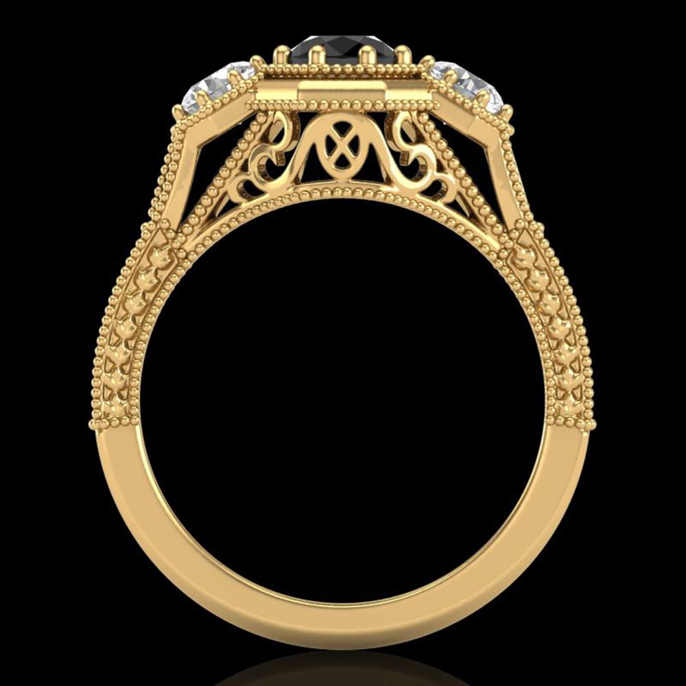 REF-123Y6X - SKU: 37949 ---- 1.05 ctw Fancy Black Diamond Art Deco 3 Stone Ring 18k Yellow Gold