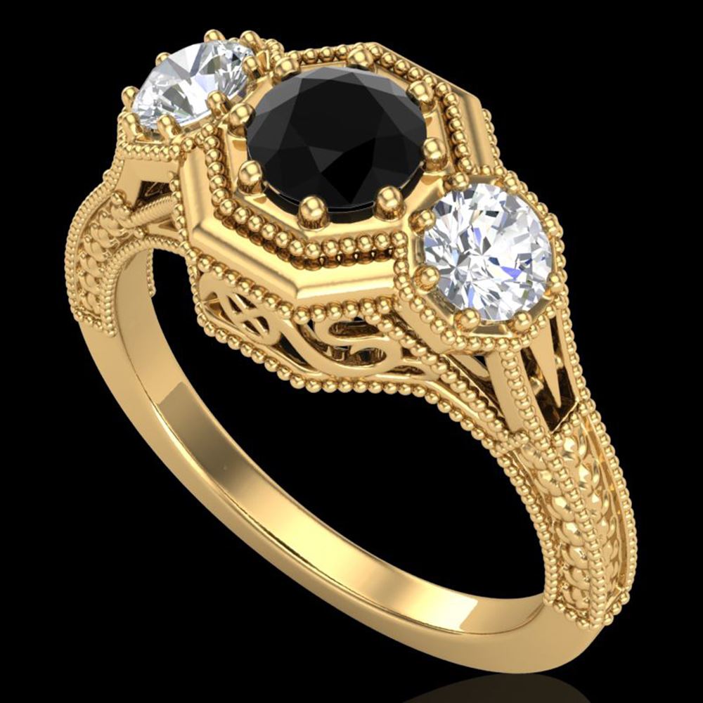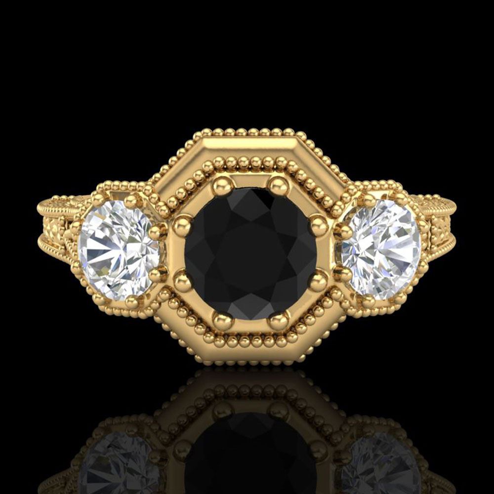 REF-123Y6X - SKU: 37949 ---- 1.05 ctw Fancy Black Diamond Art Deco 3 Stone Ring 18k Yellow Gold
