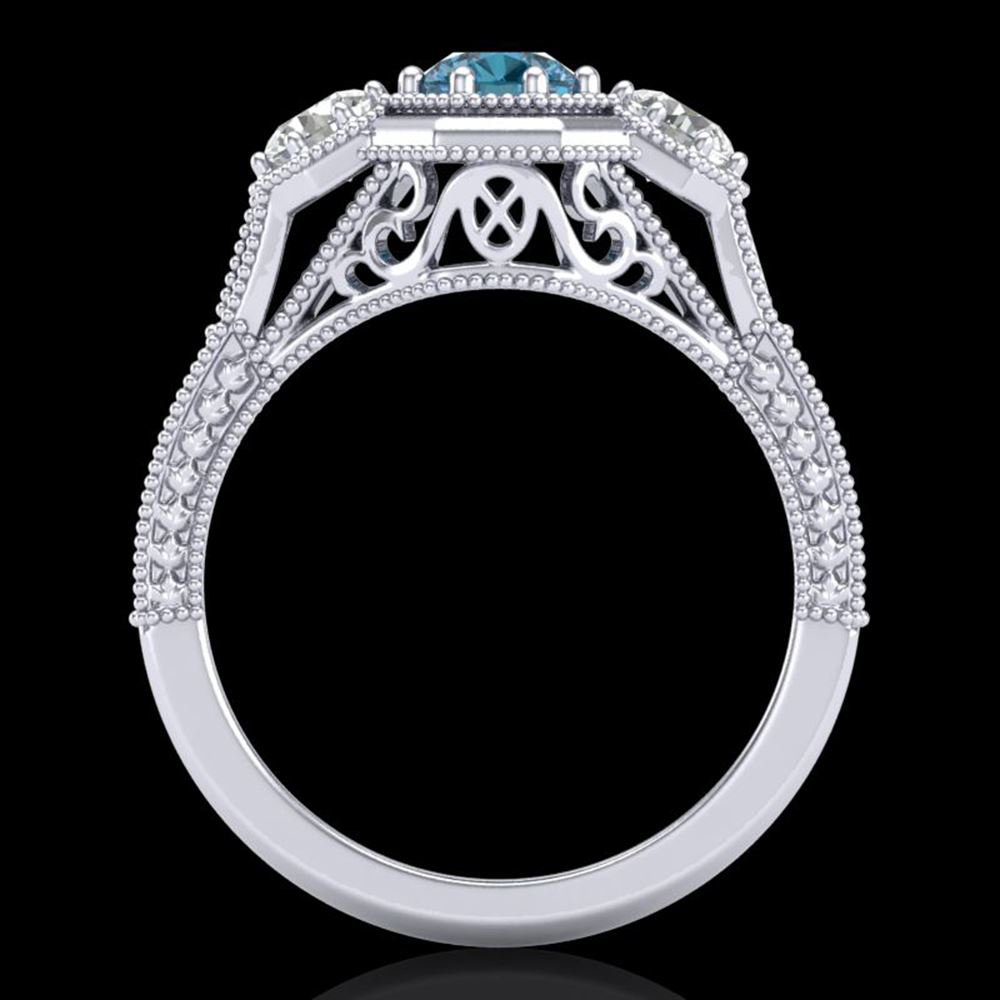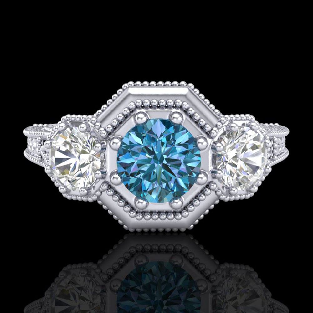 REF-161X8A - SKU: 37950 ---- 1.05 ctw Intense Blue Diamond Art Deco 3 Stone Ring 18k White Gold