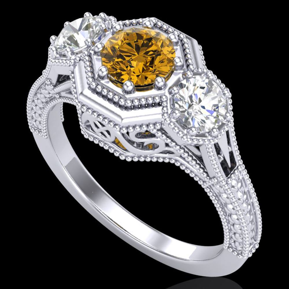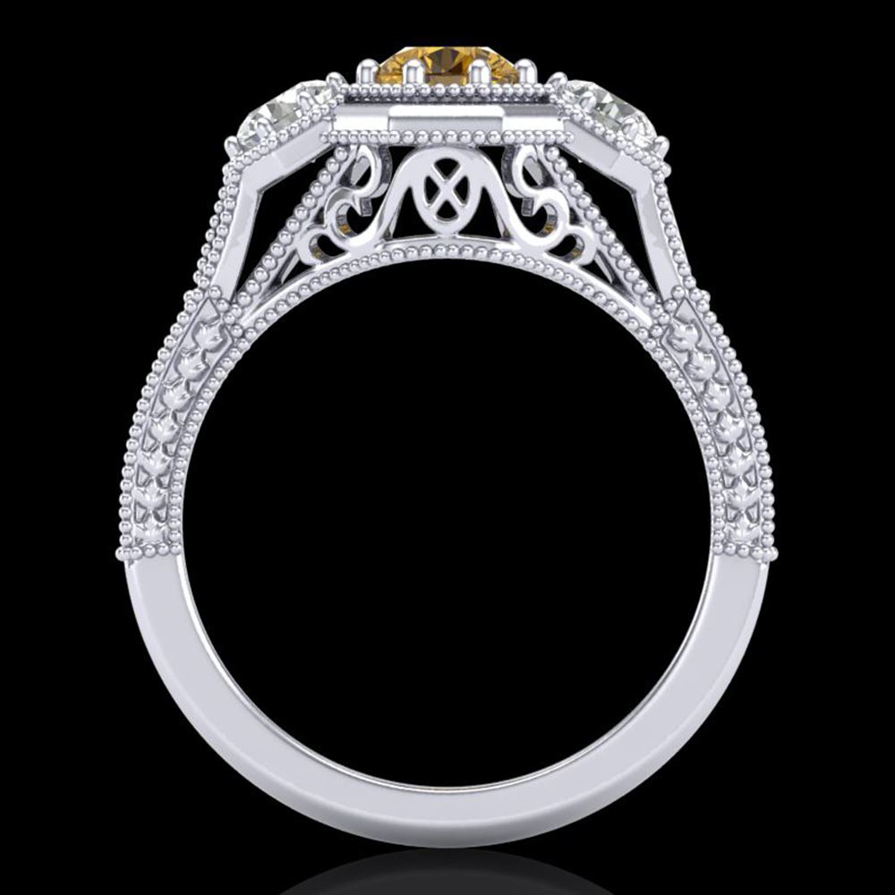 REF-200W2H - SKU: 37952 ---- 1.05 ctw Intense Fancy Yellow Diamond Art Deco Ring 18k White Gold