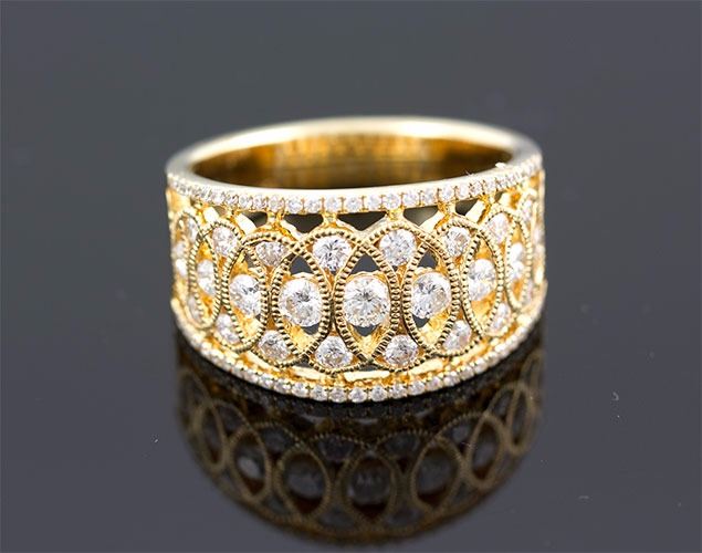 1.05 ctw Pave Channel Set Diamonds Filigree Ring 14K Yellow Gold 6.56g|**Size:6.5 6.56GMS,81RD-1.05CT