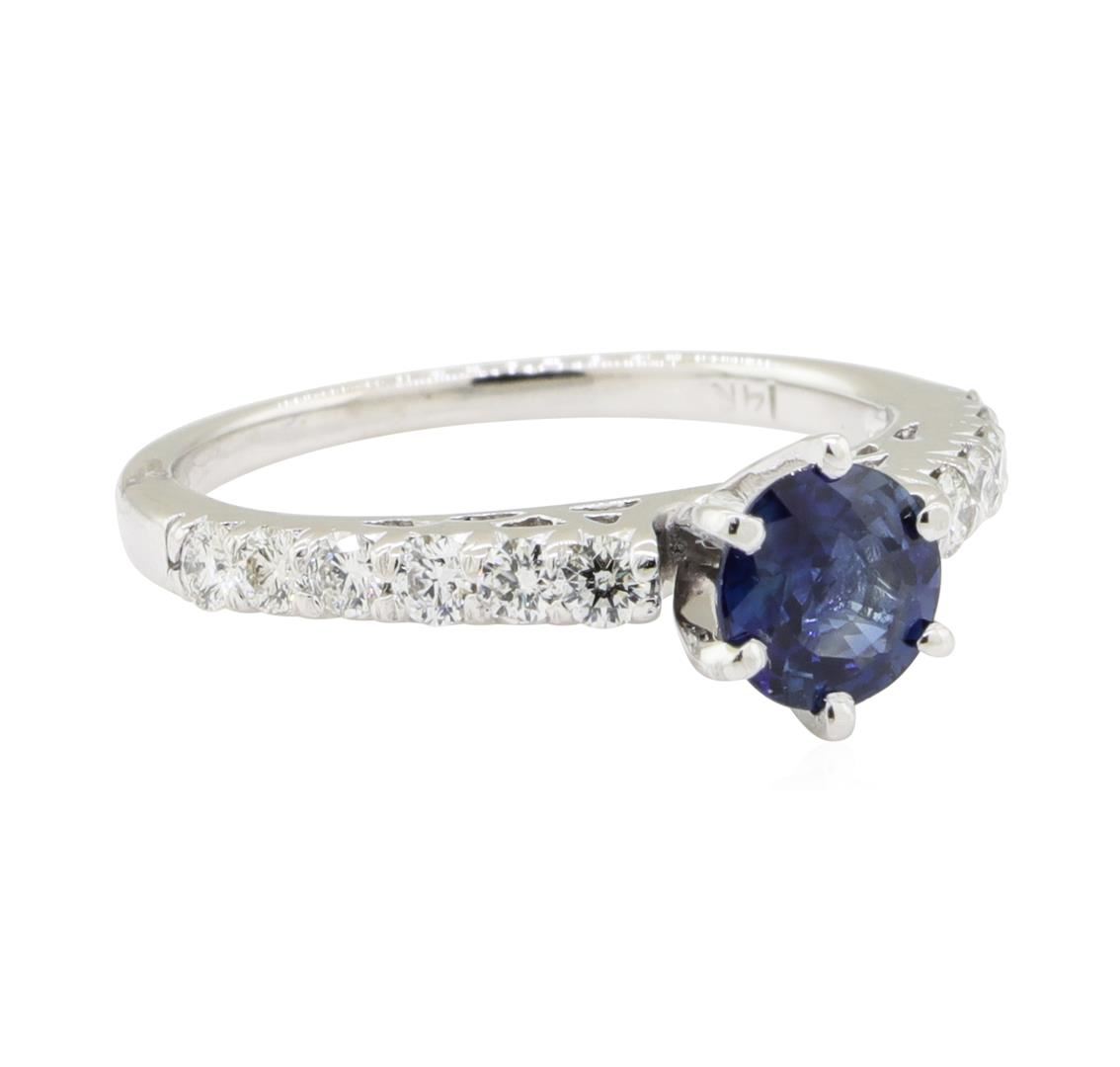 One ring featuring: 14KT white gold weighing 2.3 grams containing one round sapphire weighing 0.69ct and round diamonds weighing 0.36ctw.