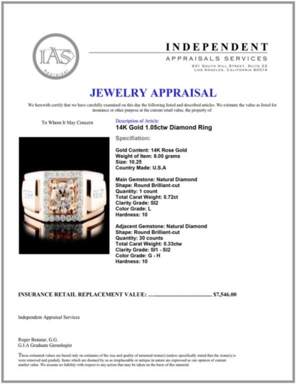 Regarding Appraised Jewelry and Loose Stones - Auctionfarm sends them out to a third party for Retail Replacement Value Appraisals, which are the most common. These types of evaluations are written for insurance needs. This would be the cost to replace the jewelry with an item of equal quality and kind, considered to be the current market price or the replacement value. This type of appraisal is done to protect you in the event of damage or loss of a valuable item. Our appraisals are conducted by independent 3rd Party appraisal firms that utilizes Certified GIA Gemologist. Appraisals should be used for verification of gemstone and/or metal weight, size, and grade only, not actual value. Appraisal value should be considered for insurance purposes only, not actual value, as price varies greatly from retail locations thru out the world. Items should not be purchased with the expectation to resell for appraisal price, or for profit.