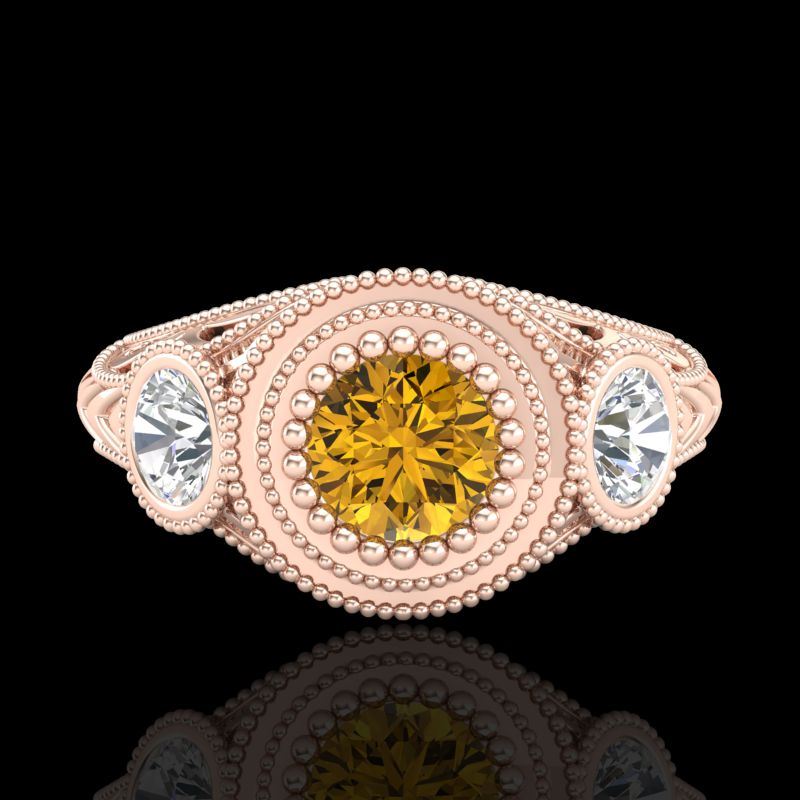 1.06 CTW Intense Fancy Yellow Diamond Art Deco 3 Stone Ring 18K Rose Gold ---- Luxury Designer Brand 3 stone ring Appraised Retail Price at $10,200 ---- SKU Number US37498 18k Rose gold 3 stone ring Size is 7, 3 stone ring measuring approx. Uniform, weighing in total approx. 9 grams. Made in the USA and is stamped 18k, Main stone 0.55 carat total weight containing 1 pieces of Intense Fancy Yellow color with SI quality Round shape cut Diamond , Stone #2 0.51 carat total weight containing 2 pieces of H-I color with VS/SI quality Round shape cut